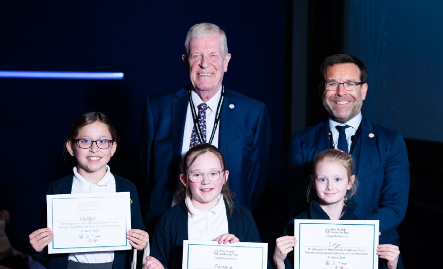 Held at the King’s Lynn Corn Exchange on Wednesday 4 March, the celebration of reading featured teams of Year 5 children from primary schools which included Trust members Clenchwarton, Gaywood, Heacham Junior, Snettisham, Walpole Cross Keys, and West Lynn, along with Terrington St John, Tilney St Lawrence, Walpole Highway, and West Walton from the Windmill Primary Federation.